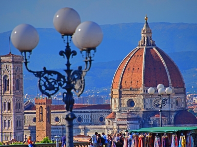 Po zajtrku se bomo zapeljali do obvoznice pri Firencah, od koder se bomo v mesto zapeljali s tramvajem. Sledil bo sprehod do znamenitega kompleksa cerkve San Lorenzo, kjer si bomo ogledali harmonično zasnovano Brunelleschijevo troladijsko baziliko. Biser notranjščine je stara zakristija z grobovi Medičejcev in številnimi reliefi, ki jih je izdelal Donatello. Kompleks Medičejskih kapelic, ki je danes muzej in jih je delal Michelangeo (notranji ogled kapele). Nato bomo nadaljevali do Stolničnega trga (Piazza del Duomo). Najprej bomo od zunaj občudovali znamenito krstilnico -zgradbo ki sodi med najstarejše v mestu, ima troje izjemnih bronastih vrat, ki sta jih izdelala Andrea Pisano in Lorenzo Ghiberti. Slednji je izdelal tudi slovita vrata, imenovana Porta del Paradiso. Sledi zunanji ogled stolnice St. Maria del Fiore s slavno Brunelleschijevo kupolo ter Giottovim Campanillom (zvonikom). Sprehod bomo zaključili na osrednjem mestnem trgu Piazza della Signoria in si od zunaj ogledali najpomembnejše spomenike. Palazzo Vecchio s svojo mogočno podobo odseva samozavest florentinskih meščanov. V odprti veži Loggia dei Lanzi in drugje po trgu stojijo številni kipi nekaterih najpomembnejših florentinskih kiparjev. Po prostem času se bomo s tramvajem odpravili nazaj do kombija in nato do hotel, večerja in prenočevanje.