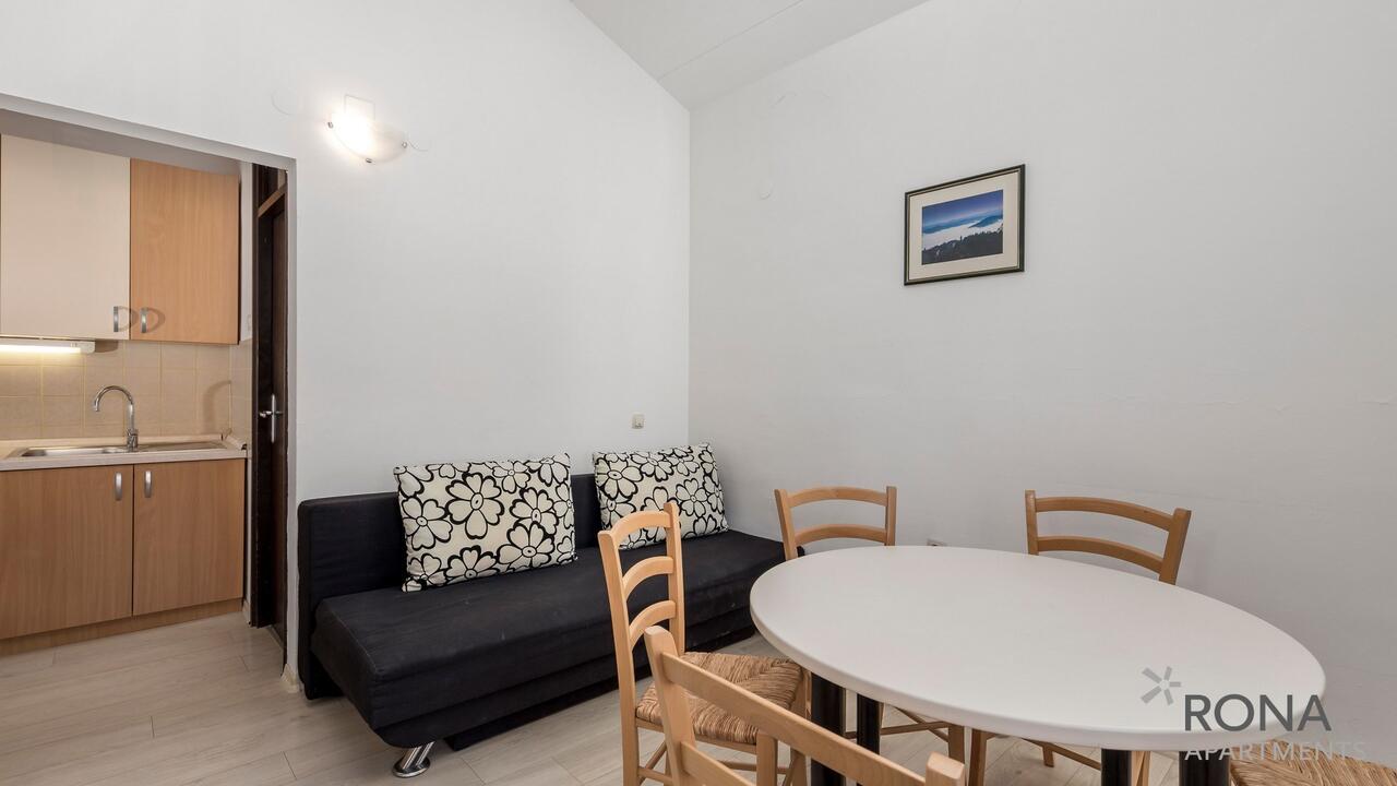 APP 2+2: 25-35 m2, spalnica s francosko posteljo in dnevni prostor z raztegljivim ležiščem za 2 osebi, kuhinja z jedilnim kotom, kopalnica (prha/WC).