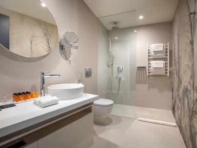 SOBE: 40 sob; pametni televizor, sef, mini bar, telefon, WiFi, kavni aparat Nespresso, klima, kopalni plašč in copati, Kopalnica (WC/prha, sušilec za lase).
