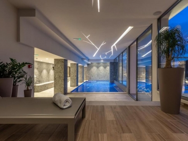 BAZENI IN WELLNESS: zunanji bazen (ogrevan, 119 m2) in otroški bazen ( 20m2), wellness center z manjšim notranjim bazenom (30 m2). Z doplačilom: vstop v savne (finska, turška, bio, infra rdeča savna; prib. 20€ max 2 uri), masaže in kozmetične storitve.