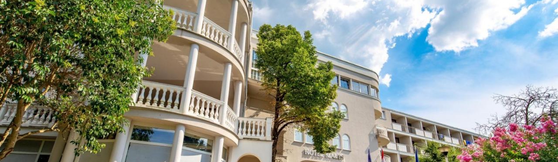 Hotel Malin se nahaja na vzpetini, sredi gostega zelenja. Do centra kraja Malinska je slabih 10 minut hoje. Gostje se lahko sprostijo v zunanjem bazenu ali obiščejo wellness center, ki ima tudi manjši notranji bazen. Otrokom so popoldan v času trajanja animacije na voljo sokovi in sladoled. Prodnata in delno betonirana plaža je oddaljena približno 100 m.