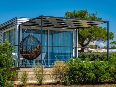MOBILNE HIŠICE: vse imajo klimo, LCD SAT TV in opremljeno teraso. Od morja oddaljene do največ 200 m.