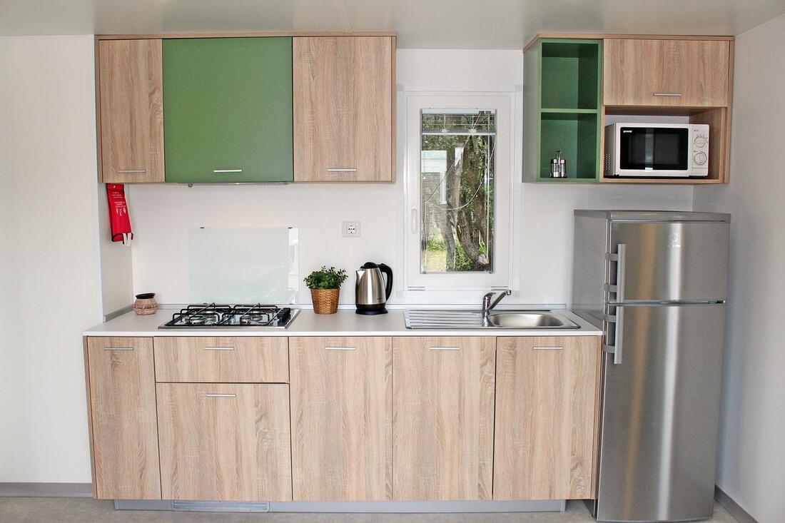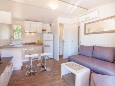 MH 4+2 SUPERIOR: 34 m2 + terasa 22 m2, 2 spalnici (ena s francosko posteljo, druga z ločenimi ležišči), 2 kopalnici (prha/WC), kuhinja in dnevni prostor z raztegljivim ležiščem. Največ 4 odrasli in 2 otroka do 12 let.