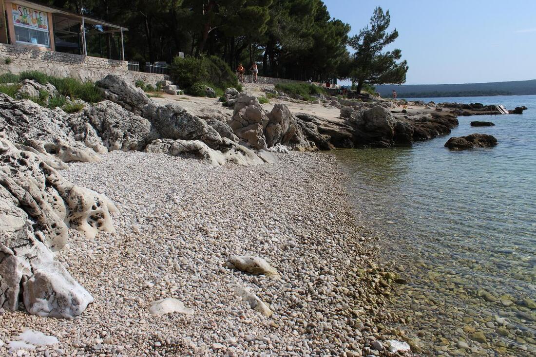 PLAŽA: delno skalnata in delno prodnata z betoniranimi mesti za sončenje.