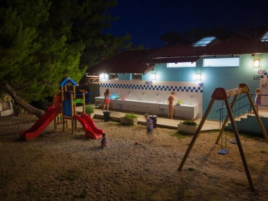 VSEBINE IN PONUDBA KAMPA: recepcija, bar, trgovina, prodajalna spominkov, menjalnica, pralnica perila, otroško igrišče.