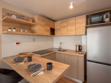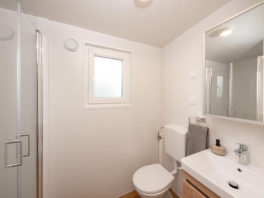 MH 4+1 SUPERIOR RELAX: nove 2025: 32 m2 + terasa 24 m2, 2 spalnici (ena s francosko posteljo, druga z ločenimi ležišči), 2 kopalnici (prha/WC), kuhinja in dnevni prostor z raztegljivim ležiščem. Največ 4 odrasli in1 otrok do 12 let.