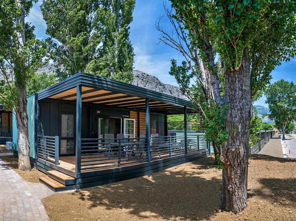- Mobilna hišica Relax 6+2 mountain view: prib. 40 m2; 3 spalnice (ena z zakonsko posteljo, drugi dve z ločenima ležiščema), kuhinjska niša (pomivalni stroj) in dnevni prostor s kotnim kavčem 130x195 cm, 2 kopalnici (prha/WC). Nahajajo se v 3. In 4. vrsti od morja.