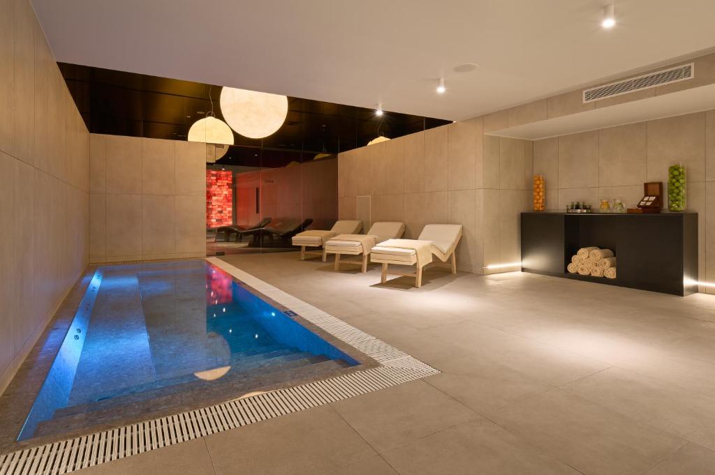 BAZENI in WELLNESS: zunanji bazen 376 m2 in zunanji otroški bazen 123 m2, ležalniki ob bazenu glede na razpoložljivost, ogrevan notranji bazen 167 m2, wellness center z doplačilom: savne (ledena savna, suha savna, sistemska savna), topel vitality bazen z ležalniki, temna soba z ležalniki, prostor za sprostitev.