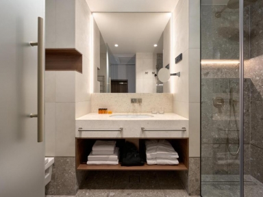 VSEBINE IN PONUDBA OBJEKTA: recepcija, restavracija Mediterraneo, Brentos bar, Elaphos bar, 2 kongresni dvorani, telovadnica, trgovina v sklopu hotela, z doplačilom garaža 15 €/dan in zunanje parkirišče 10 €/dan, polnilnica za električna vozila.