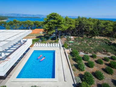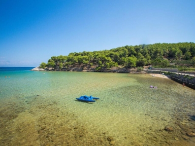 Hotel se nahaja v borovem gozdu, na polotoku, prib. 500 m do Jelse. Hotel ima zunanji in notranji bazen, raznolika plaža je oddaljena 150 m. Lahko izbirate med storitvijo polpenzion ali all inclusive.