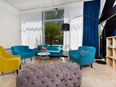SOBE: 200 sob; SAT TV, telefon, stropni ventilator, kopalnica (prha/WC, sušilec za lase), balkon ali terasa. Možnost sobe s klimo ali brez.