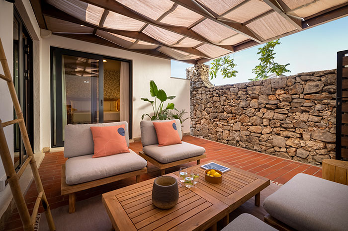 Family Suite 2+3: prib. 40 m2, dnevna soba z raztegljivim kavčem, otroška soba z dvema posteljama, spalnica z zakonsko posteljo, lounge terasa.