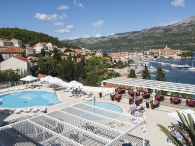 Hotel Marko Polo se nahaja na hribu nad morjem od se odpira edinstven pogled na renesančno mesto Korčula, ki je oddaljeno 10 minut prijetnega sprehoda. Hotel je dobil ime po enem najslavnejših mornarjev s Korčule in je idealno zatočišče za svetovne popotnike.
