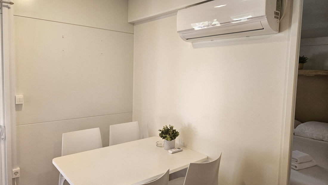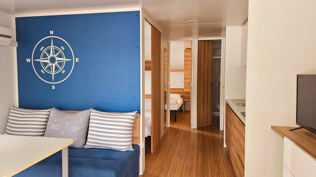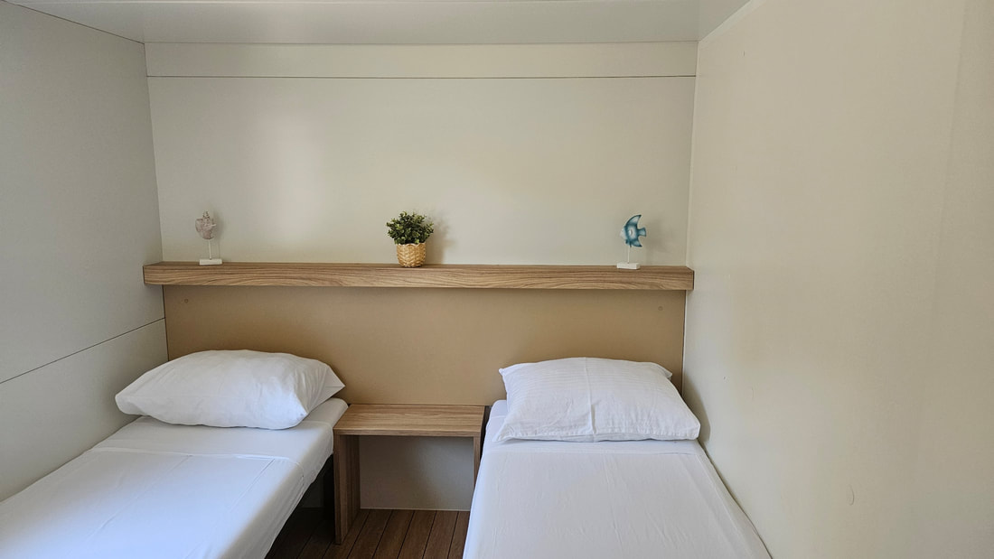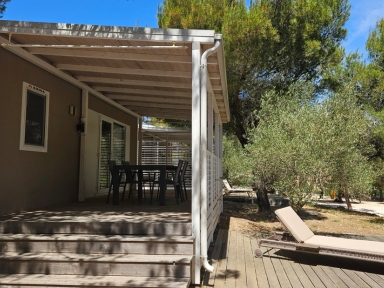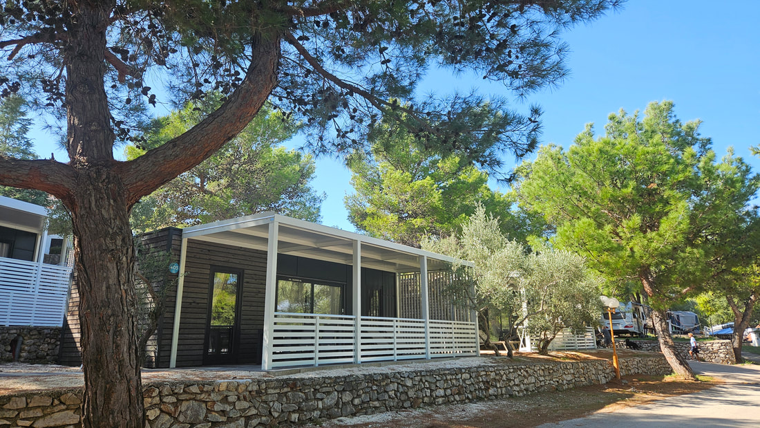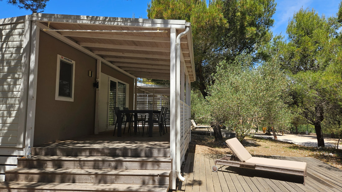 MOBILNE HIŠICE: vse mobilne hišice imajo klimo, SAT TV in WiFi ter opremljeno nadkrito teraso. Parkirno mesto ob hišici. Hišice so od morja oddaljene do največ 200 m.