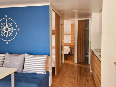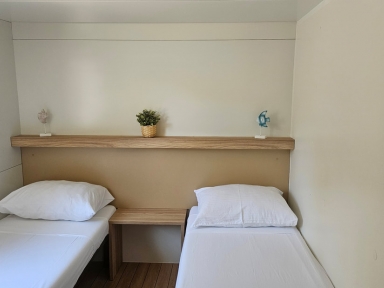- MH 4+2 COMFORT: prib. 30 m2; 2 spalnici (ena s francosko posteljo, druga z ločenima ležiščema), dnevni prostor s kuhinjsko nišo, 2 kopalnici (prha/WC). Največ 4 odrasli in 2 otroka do 12 let.