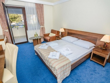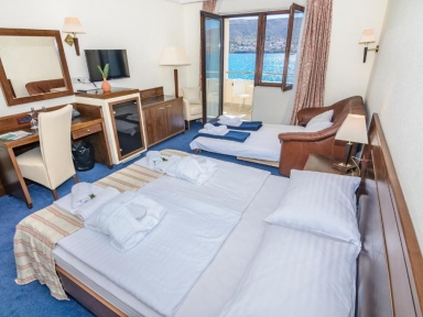 PLAŽA: prodnata, delno peščena in kamnita plaža tik ob hotelu. Možnost najema senčnikov in ležalnikov.
