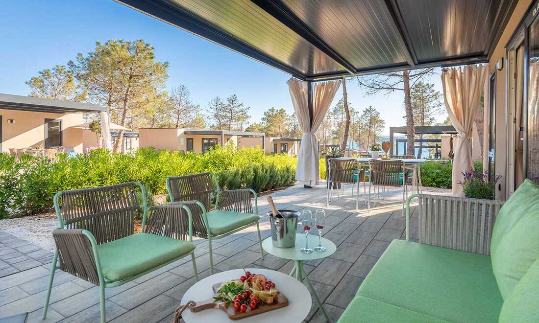 MOBILNE HIŠICE: 232 novih in sodobno opremljenih mobilnih hišic velikosti 33-40 m2; vse imajo klimo, SAT TV, pomivalni stroj, aparat za kavo Nespresso in aparat za filter kavo, kuhalnik za vodo, WiFi ter opremljeno teraso s 6 stoli, 2 ležalnikoma in senčnikom. Posamezne parcele za mobilne hiške so običajno velike več kot 200 m2, klasične parcele pa več kot 120 m2.