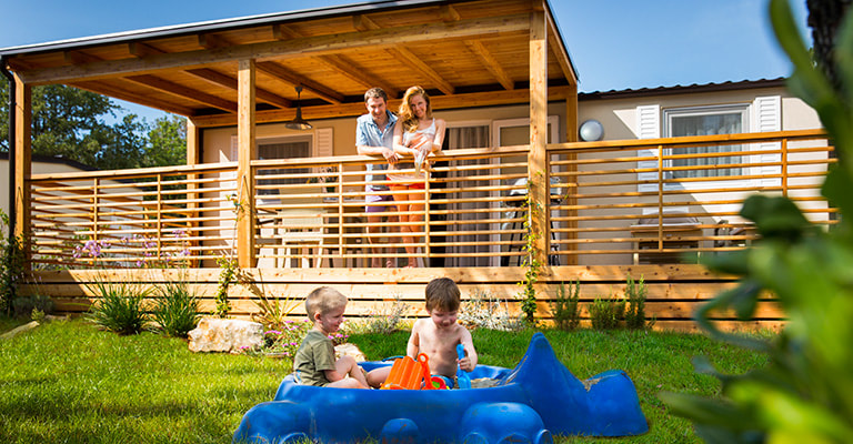 MH 4+2 MH ISTRIAN HOME AC (MHPIV): 32 m² + terasa 27 m²; 2 spalnici (ena z zakonsko posteljo, druga z ločenima ležiščema), kuhinjska niša in dnevni prostor z raztegljivim kavčem, 2 kopalnici (prha/WC). Največ 4 odrasli in 2 otroka do 12 let. Del Istrian Village-a, lokacija v bližini vodnega parka Aquamar Lanterna.