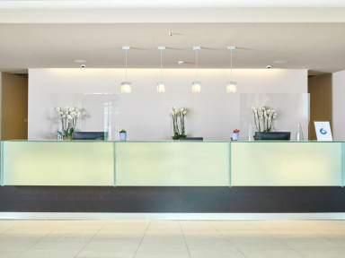 VSEBINE IN PONUDBA OBJEKTA: 3-5 nadstropij; recepcija, samopostrežna restavracija, a la carte restavracija, aperitiv bar, trgovina s spominki in časopisi, konferenčna dvorana, frizerski salon, prostor za hrambo koles, notranja in zunanja otroška igralnica, bar ob bazenu. V sklopu naselja Zelena Laguna: restavracije, bari in trgovine, športni centri in športna dvorana, parkirišče (2 €/dan).