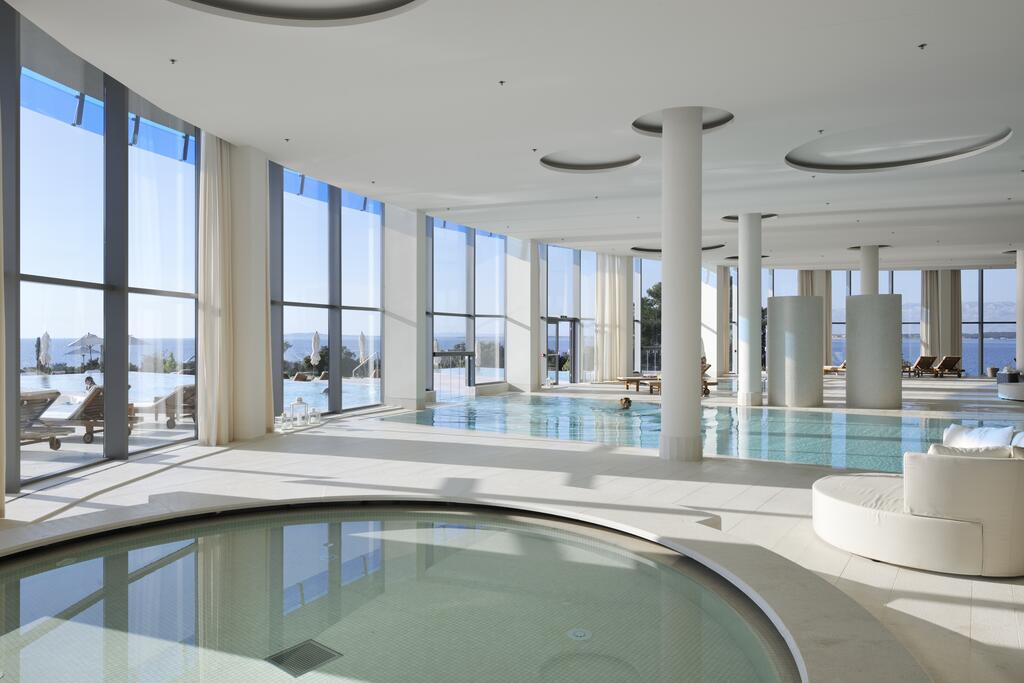 BAZENI IN WELLNESS: Acquapura SPA na 6.000 m2: zunanji bazen, notranji bazen povezan z zunanjim bazenom, Thalasso-notranji/zunanji bazen, prostor z različnimi savnami: finska savna, parna kopel, sole-parna kopel, savna s pogledom na morje, hammam, prostor za počitek s panoramskim pogledom, temna soba za počitek z gugalnicami, soba z vodnimi posteljami, privatni SPA, kanal s hladno vodo, drobljeni led, različni prostori za sprostitev in počitek, obsežna ponudba sob za tretmaje za različne masaže in kozmetične tretmaje, dvorana za cardio fitness in gimnastična dvorana, bar z bogato ponudbo različnih čajev, SPA Bistro s fitness juice barom in snack ponudbo, wellness vrt s pogledom na morje in na Velebit.