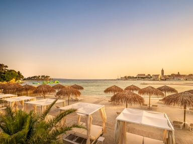PLAŽA: pred hotelom terase za sončenje in nova plaža Val Padova Sandy Beach z otroškimi atrakcijami za igro v pesku. Kamnito-prodnata plaža prib. 300 m. Možnost najema sončnikov in ležalnikov.