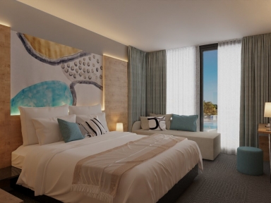 SOBE: 175 sob (prenova 2024); klima, LCD SAT TV, telefon, kopalnica (prha ali kad/WC), sušilnik za lase, mini bar, sef, balkon.