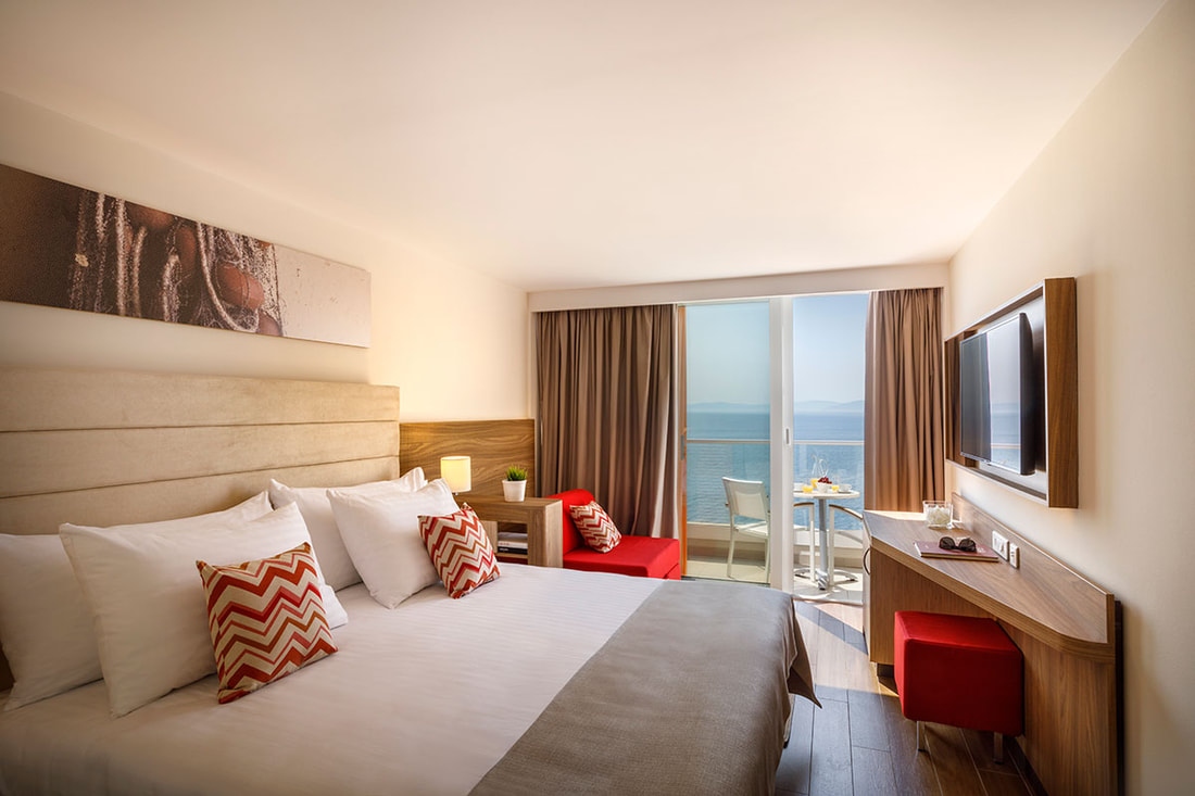 SOBE: 94 družinskih sob in suite; klima, LCD SAT TV, mini bar, sef, telefon, kopalnica (kad ali prha/WC), sušilnik za lase, balkon.