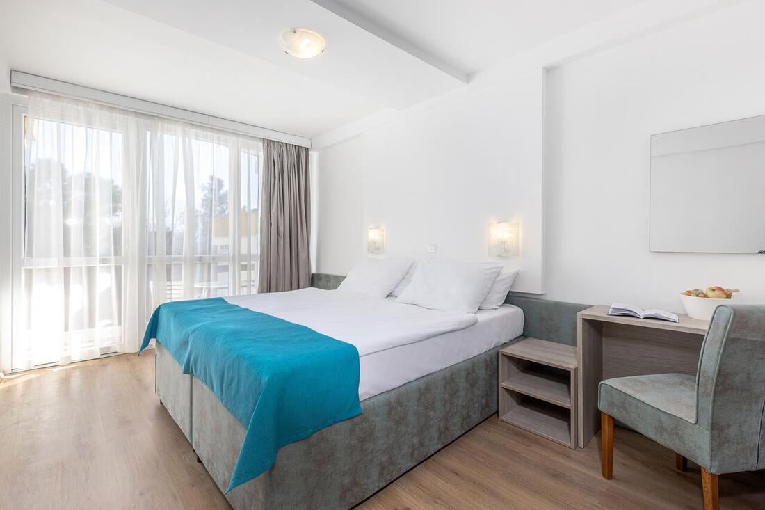 SOBE (ANNEX 3*): 103 prenovljene sob, klima SAT TV, telefon, kopalnica (prha/WC), balkon na morsko stran. V letu 202021 so bili paviljoni prenovljeni.