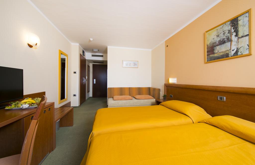 SOBE 4*: superior sobe; SAT TV, telefon, klima, mini bar, kopalnica (prha/WC), sušilnik za lase, balkon.