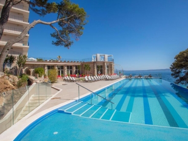 BAZENI in WELLNESS: dva zunanja bazena, neskončni zunanji bazen s panoramskim pogledom na morje. Ležalniki pri bazenu brezplačno (glede na razpoložljivost). Wellness & Spa center (savne, masaže z doplačilom).