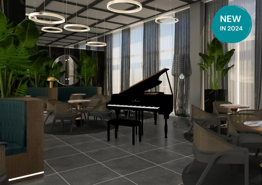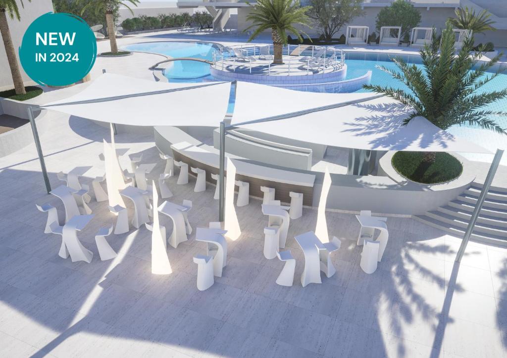 SOBE (OLYMPIA SKY): 149 sob in suit v novem delu hotela; SAT TV, mini bar, kopalnica (prha ali kad/WC), sušilnik za lase, balkon s pogledom na morje. V sobi aparat za kavo, steklenica vode ob prihodu, kopalni plašč in copati.