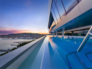 BAZENI IN WELLNESS: zunanji bazen s sladko vodo (prib. 350 m2), ležalniki in sončniki ob bazenu (glede na razpoložljivost), notranji bazen (prib. 126m2), fitnes in wellness center (z doplačilom savna, jacuzzi, masaže, sprostitveni tretmaji, hidro-masažna kad). Gostom objekta Olympia Sky je na voljo tudi »neskončni-infinity« bazen, ki se nahaja v 9. nadstropju.