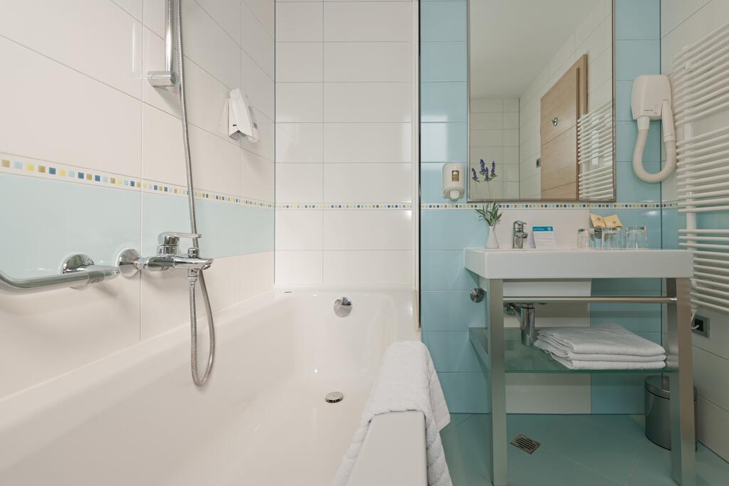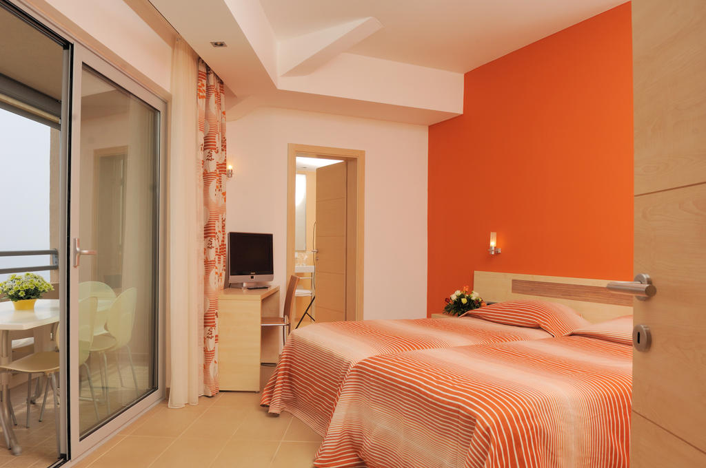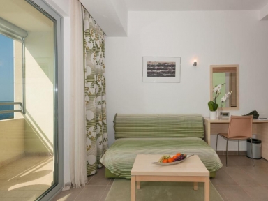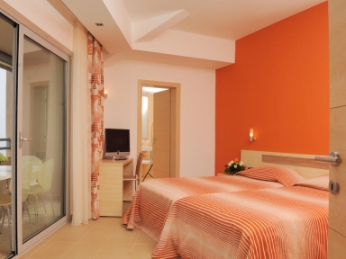 SOBE: 134 sob: klima, LCD SAT TV, telefon, sef, mini hladilnik, WiFi, kopalnica (kadali prha/WC), sušilnik za lase, balkon. Premium sobe se nahajajo v prvi vrsti od morja.