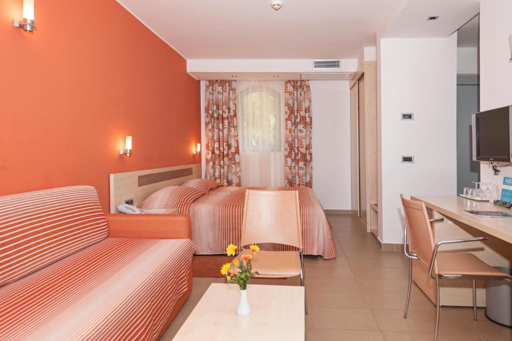 Apartmaji in sobe so razdeljeni v 16 paviljonov, ki jih obdaja lepo urejen vrt. Vzpenjajo se po rahlih pobočjih od koder je čudovit pogled na vrsarski arhipelag. Kot v vsej Istri so plaže skalnate, s kamnitimi in tlakovanimi ploščadmi, na voljo pa je tudi velik bazen.